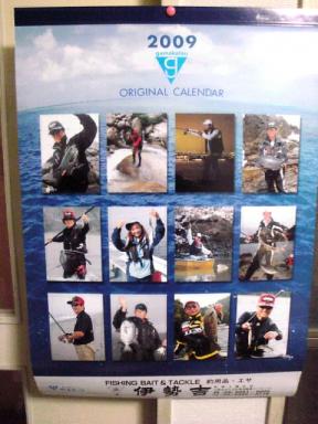 こんばんわ さっきお仕事から帰りました帰り道に ちょっと 寄り道をしてしまいまして・・・魔界へ誘われましたです、はい で、子供買い・・・いや、中学生買い かなエギ王ナチュラルカラー・このしろ2個、アジ1個、いとより1個、赤テープオレンジ1個計5個補充しました。痛いんだぁ~ でも他よりは安いのよね~660×5=3300円なり 一週間分の食費がぁ!! 本当はコノシロは10個位欲しいんですけどね(^^;)で、レジで 戴きました2009年カレンダーです貰えるかなぁ~って思っていましたが、戴きました良かった魔界のカレンダーって 見てるだけで楽しいんですよねアオリイカはないですけど・・・ワクワクしてきます え何でエギ買ったかってそれは また次回 詳しくアップしますね お腹減ったんでしますわ ほんじゃ、またっ