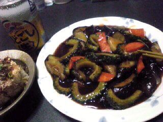 豚無し茄子とゴーヤのスブタができあがり(^_^;)