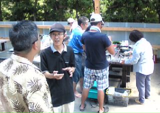 一番奥で調理中の隊長は ヘリテージA師匠が朝釣ったアオリンを捌いています。
