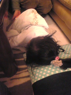 写真は孫娘5才が大好きなイカのお刺身を食べた後 寝てしまいました(^-^)
