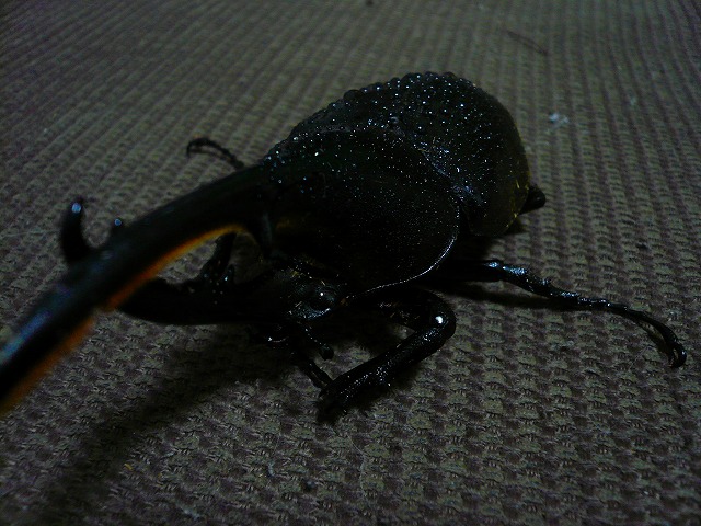 やっと梅雨に入りました。じめじめしてナメクジとか自分にはいい環境ですね!こんばんは。ダイナです。というわけで!(わけで!)←つぶきち&まめきち風にどうぞ。昨日大人の事情によりできなかった紹介です。まずは~、何か気がついたら買ってたコイツを。ヘラクレス・トリニダーデンシス(仮)「何か名前つけたら?」との意見により、名前を即席で決定。「トリニティ」理由としては「トリニダーデンシス」を噛んだらそう発音したように聞こえたから。符節欠け欠け。しかもそう永くないとかー。ちなみに現在梅雨真っ只中なため、背中の模様は出ません。←これ打とうとしたら「みょん」て出て焦った。タランドゥスオオツヤクワガタ・♂見難いよ! といった苦情は専門の窓口にてお願いいたします。譲ってもらったものです。「飼いきれねー! だから飼わない?」との破滅への素晴らしい要望により引き取りました。アングル変え。ちなみに背景のは新ゼーレ。アニメイトでヱヴァ:序買ったらついてきた。これで買い物するとエコポイントが倍になる仕様です。更にアングル変ヱ。ヱはあえてヱにしました。めんどいし。ブルブル震えます。更にアングryしつけぇよ! というご意見はやはり専門の窓口にて受け付けております。♀。まごうとなき♀。コレを♂と言い張る方は眼科へ。もしくは精神科へ。案内版は受付右側となっております。ちなみに同時に撮ろうとしたら♂が♀を挟みそうに。ん~、怖い。とゆーわけで、何か増えた仲間でした。それでは。