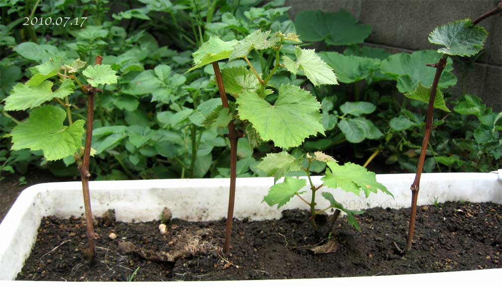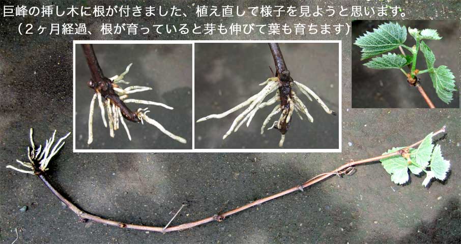 この例のようにあきらめずに粘ってみましょう。(この枝は残念ながら枯れましたが下の写真の4本は2012年7月育っています)