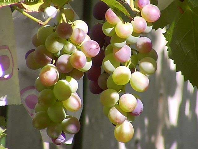 8月中旬頃には小粒の実はすでに色が付きはじめたようですがこの房もそろそろと思います。