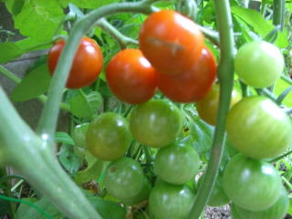 梅雨の中の曇り空。蒸し暑い一日でしたウね。久々に庭に出ると、ミニトマトが赤くなってきました。もうすぐ、朝の食卓にお目見えしそう。そして、ようやくシシトウが成ってきました。葉っぱは虫のえさになっているもよう。自分で作った野菜が一番!!と自分を納得させながら、片手間に野菜を育てているこの頃です。以前テレビで見た、スイカの話。化粧水やスイカ糖なるものが今話題のよう。美肌、元気回復に良いらしいよ。