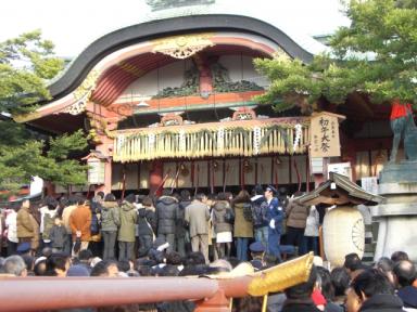 昨日は、例年お参りする伏見稲荷大社へ行ってきました。例年は午前中に行くところ、午後3時ごろ到着。JR奈良線の電車は満員御礼。伏見稲荷駅の臨時改札口も大勢の人でごった返していました。人の波に押されるように本殿にたどり付くと、そこもお参りの順番待ちの人の山。警備員と警察官が黄色いテープで人数制限をして、お参りの人を誘導してました。待つこと約15分、「大晦日から毎日こんなに人が来たら、神さんもお疲れでんなー。今日はアルバイトの神さんかも知れまへんな・・・。」隣のおっちゃんは「そら、にいちゃん、お賽銭の多いもんから、叶えてくれはるでー。」「ほんまかいなー」笑い・・・。あのおっちゃん、どっさりお札を賽銭箱に入れはったかどうかは、さだかではありません。ようやく本殿のたどりつき、見上げるとしめ縄に豊かに稔った稲穂が出むかえてくれました。稲荷は稲生・稲成・飯生・飯成と書かれるように、五穀豊穣の恵み豊かさの象徴だそうです。今年は、特に気に入った「達成の鍵」を請願達成の年にするためにしっかりいただいてきました。昨年から、やり残してきたこと、前からやりたかったこと、まずは紙(神)に書いているこのお正月です。多くの宝物の倉庫の鍵、順番にあけてみましょ。■My オークション ■My HP(作成中)