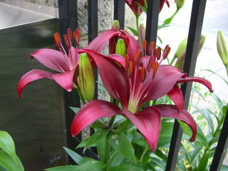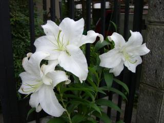 降り続いた雨もホット一息、晴れ間が出てきました。玄関先でようやく咲いたカサブランカです。とてもいい香りがしています。先日趣味の園芸で、ユリの花粉についていろいろアドバイスしてました。洋服に花粉がついたときは、触らない、拭かない。花粉に油分があるので、きれいに取れません。花粉がついたときは、ガムテープで花粉が付いた部分を押さえて取るときれいになってました。また、咲き始めの時に花粉の付いているバナナのようなところは、取ってしまってもいいそうです。咲き始めのときは触っても花粉が手につきません。早速我が家のカサブランカも取ってしまいました。(ホンマ手に付きませんでした)花粉の部分がないと、ちょっとさみしいですが・・・。(ユリさんごめんなさい)明日も晴れてほしいなー。ところで3日前からいろいろヤフーオークションに出品しました。貯金箱とかいろいろです。いろんな入札があってびっくりしてます。世の中、いろんな価値観のある方がいること、発見しました。オークションに熱中症です。けったいな物も出品してますので一度覗いてみてくださいね。左側バーのフリーページ欄、オークションブースをクリックしてみてくださいね。
