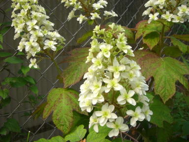 梅雨と言えばアジサイのシーズン。先日近くにあるアジサイのお寺、頼光寺へ行ったら柏葉アジサイが満開でした。葉っぱが柏餅の柏葉に似ている事からこの名前が付いたらしく境内のあちこちで咲いてました。このアジサイをバックに記念撮影をする人が多いこと。花をバックにすると、不思議とオバちゃんでも素敵に見えてくるものですね。おととい、行きつけのショップに仕事帰り、ふと寄ってみたらこのアジサイがあり、一番背丈の低いのをゲット、早速我が家に根を下ろしました。今年の5月は雨が多かったせいか、関西のアジサイは例年より花が小ぶりだそうです。ボテっとしてなくて、生け花には良いかもしれませんね。