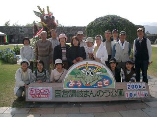 先週末、淡路景観園芸学校の平田先生の引率で、7期生OB(アルファ7)計17名で讃岐うどんのメッカ「まんのう町」を1泊2日で訪ねました。貸切バスに乗って、まず配られた資料に幹事さん、平田先生の思い入れが感じられました。学校を出て、香川志度ICを出、イサムノグチ庭園美術館へ(当日閉園のため外観のみ見学)こんなでっかい石、どうやって運ぶねん???石はきめの細かさが、良し悪しの一つ。ン10万からン百万円もする石財が、町のあちこちの敷地に無造作にころがっています。(置いてあるのかも知れませんが・・・)このあたりは、一流の造園素材の地だそうで、石の「庵治(あじ)」、盆栽の「鬼無(きなし)」歴史の屋島、栗林公園など造園人にとっては一種の聖地のようなところが多くあるそうな。いよいよ、讃岐うどん尽くし第1弾、屋島の「わらや」へやってきました。4,5人でテーブルを囲み、まず出てきたのは醤油豆と、でっかい花瓶のような麺つゆ入れ。しばらくすると、湯気がモクモクたった「たらい(家族)うどん」のお出ましお出まし。麺が長いので、箸ではさんだ麺を上に上げずに、横に引きずり出しながら、麺つゆにつけて食べる・・・。と自称B級グルメの平田先生のコメントが湯気ごしに聞こえる。女性4,5人では食べきれないほどあり、うどんと名物の醤油豆で「フウーツ!!ごちそうさん」ちなみにメニューは・・・続いて、鬼無の盆栽村創業100余年の「中西珍松園」を見学。こんな浅い鉢で紅葉しているもみじ。樹齢200年余年の五葉松。素人の素朴な質問・・・「これ、なんぼ?、ン百万?」4代目若おかみの、にこやかな返事は「一桁ちゃいます」「エー、ということは、200年で2000万円、1年10万、1ヶ月8000円か・・・そう考えると安いね・・・。」とつぶやいていると、若おかみの一言「手放す事はないでしょうね」ここの立派な盆栽たちは、オーナーがいて、中西さんが代わって日々管理し、手入れができるオーナーは持ち帰るとな。最近は「BONSAI」の魅力に取り付かれ、外国人の生徒までいるそうです。10cmほどの松の苗木の畑を車中から見て、何代かの人の手を経て育ってゆく盆栽・・・。そんな魅力に取り付かれる人が多くいるのも、納得した盆栽の町でした。次は、讃岐うどん尽くし第2弾(第6弾まで)ところで、そばは「蕎麦」うどんは「饂飩」。漢字で書ける人ってどれぐらいいるんでしょうか?私は、どちらも書けませーん。↓■こんなページも種まきしてみました。元気に育ってくれると嬉しいな。■My オークション ■My HP(作成中)
