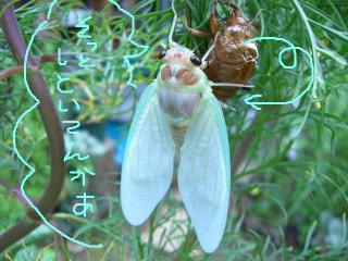 朝は早ようから、ミーン、ミーン、ミーン。セミの鳴き声が、目覚まし時計になるこの頃ですね。長雨に合って、コスモスもあっちを向いたり、こっちを向いたり、倒れてるのもあるし、久々に手入れをしました。そんなコスモスの葉っぱに、バルタン星人が・・・。セミが脱皮して葉っぱにとまってました。子どもの頃、夜中に懐中電灯で見ていた記憶が、こんな昼日中に脱皮しているとは、びっくりです。この黄緑の羽が、だんだん茶色くなってあぶらゼミのあの色に変わるんですね。こんなのを見ると、少々うるさく鳴いていても「ま、いっかー」てなります。先日から、ヤフオクにはまりブログ更新をしてませんでした。同時にとは思いつつ、そんな起用ではないので「ま、いっかー」です。ヤフオクでいろんな体験をして、少々興奮気味です。セミの脱皮のように、この夏飛び回れることを来月の目標にして見ましょ。