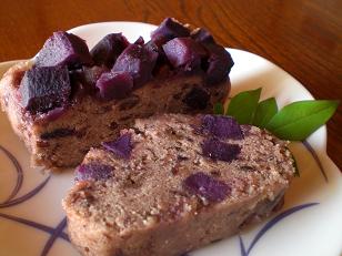 そばの蒸し羊羹のレシピです。〈材料〉さつまいも 150gさとう 50g塩 少々そば粉 60gもち米粉 25g小豆缶 250g黒砂糖 30gオープンシート〈作り方〉1 さつまいもは角切りにして水と砂糖を入れ固めにゆでる。2 そば粉にもち米粉と小豆缶、砂糖を入れてねる。3 1をシートの上におき、2を中央において35分蒸す。基本の作り方は以上ですが、私はこの倍の量で、二種類のさつまいもを使って15cmのものを4本作りました。(お茶に持っていったのはそのままの分量で2本です。)上の写真とちょっと順番が違いますね。ぴったりの箱があったので8×4の32個入れることができました。端っこは、私と末娘が食べました。さつまいもをゆでるときは、ほんの少しの水でゆでる方がいいですね。料理教室の時は、たくさんの水で長くゆでてしまったので柔らかくなりすぎて上にのせるときにつぶれてしまいました今回は、中に入れ込んだものと上にのせたものを二通り作ってみました。練るときに固いようでしたら、さつまいものゆで汁を入れて加減するといいようです。私は、小豆缶じゃなくて普通のあんこを使いました。おまけ3月の料理教室で先生が作ってきてくださった紫芋ケーキよく似ているので、これかなと思いましたが…ちょっと違うようです。蒸し羊羹もこんな風に盛りつけても素敵だとおもいます。(豪華ランチはこちら)7日の料理教室のメニューです。秋サバのみそ煮、秋そばのむしようかん、簡単吸い物、時寿司、タコサラダ、先生宅のキュウイねっ!上にのせているさつまいもがつぶれているでしょう?誰がゆがいたって?もちろん私です。端っこをもらったのでさつまいもがたくさんのっています。料理教室ではこの分量で大きめを一本作ったんですよね。書き忘れていましたが、小さめ2本では蒸し時間はもっと短くてもいいようです。お知らせ21日から山口へ…22日から24日まで京都へ行ってきます。山口へは、退院してひと月になる一人暮らしの兄の様子を見に…京都行きは、ついでのお楽しみを作りたかったので…3月末に兄が入院してからというものひと月に1,2回の見舞いや外泊の付き添い等両親亡き後、二人きりの兄妹では、私一人が動くしかありませんでした。心配で心配で…何度も病院に電話したり…退院してからも毎日の電話は欠かせず…でも、時にはそれが負担になったりもしていたんですよね。「行かなければ!」という義務感だけだと気が重くなってしまうので今までも時々お楽しみを入れていました。「遊びの言い訳じゃない??」と思われるかもしれないけど…そんなわけで、22日は、山口から門司港へ…そして、フェリーに乗って神戸港で降り、京都へ行ってきま~す!帰ってきたら、また旅行記を書きますね!この頃急に寒くなってきましたね。みなさん、お風邪を引かれませんように!今日も来てくださってありがとうございました。