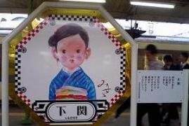 山陰の海に行った明くる日10日は下関駅からバスに乗って唐戸市場に行きました。下関駅駅のホームで金子みすずさんの「大漁」の詩が見られます。みすずさんに関心のある方は、みすず潮彩号に乗って…山陰の旅金子みすずさんと青海島遊覧船…山陰の旅2山口県仙崎の旅の思い出と金子みすずさんの薔薇 を見てくださいね!駅構内に小さな水族館?50周年記念だそうです。唐戸市場前回唐戸市場に行ったとき(関門海峡小さなぶらり旅(唐戸、門司港レトロ)を見てください)は、休日ではなかったため屋台は出ていませんでしたが今回は、土曜ということもあって人!人!人!でとても賑わっていました。前々から食べたかった屋台のお寿司!もう店を閉めるからと全品100円!!(トロは100円引き)回転寿司とは比べものにならないくらい新鮮でネタも大きくてビックリ!どこの店も1時半くらいからは、全品100円や半額になっていたので遅く行くのがお勧めです。これだけで600円!穴子が長~いでしょ?エビの大きいのも甘みがあっておいしい!ふく汁も食べました。1杯400円!!安くておいしいので追加注文!タコやイカも長いでしょう?シャリ(ご飯)の二倍以上です。他にもふぐの唐揚げやサザエの壺焼きなんかもあっておいしいにおいが周りに広がって雰囲気だけでも楽しくて何時間でも楽しめそうでした。ハッと気づいて時計を見ると予定のフェリーの時間!慌ててお土産を買ってフェリー乗り場に行きました。おみやげ1パック130円を2パック250円でいいからと言われて買ったおきゅうとところてんに似ていてテングサをそのまま固めたもの?ふぐの一夜干し10匹で500円ふぐの皮500円…こりこりしておいしい!ふりかけ2品、特牛(こっとい)産です。1つ500円。醤油をちょっと垂らしてお湯を注げばお吸い物になります。「ぶちうま」とは、方言で「とてもおいしい」という意味です。明くる日は、ふぐの唐揚げ、おきゅうとの酢味噌和え、吸い物で…海の幸満載の夕食でした。唐戸市場で海の幸を味わった後は唐戸桟橋からフェリーに乗って門司港へ門司港レトロ旧・大阪商船1階は、無料の休憩所になっています。雨も降っていたので缶コーヒーを買って一息!門司港駅前に噴水があったかな??こんな噴水を見るとホッとします。門司港からまた小倉…博多…熊本…と列車を乗り継いでやっと我が家に帰ってきました。ホッ!!見舞い旅行はまだ続きそうです。来週は父の法事もあるのでちょこっと旅行は無理かもしれませんけどね。見舞いを義務とか努めとか思わずにちょこっと楽しみも持ちながら気長にしようかなと思っています。一人暮らしをしている兄(入院中)の一日も早い回復を願って…大事にしているフィットを乗り回して遊んじゃえ~こらこら!それは不謹慎!?内緒内緒!はい!ちゃんと動かしているからね~!心配しないで!今日はもう土曜!気づいたときはもう1週間経っていました。ホントに時間がかかります。これもあれも…と思うからでしょうか?次はいつになるかなと思いつつのんびり更新を続けています。23日は久しぶりに終日仕事、24日から26日は法事でまた山口行きです。火曜あたりに短く更新してまたお休みするかもしれません。ボチボチブログ…今日もご訪問いただいてありがとうございます。