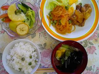 28日(月)にボランティア料理教室に行ってきました。最近は、似たような献立が続いていたので何となくアップはしていませんでしたが今回はちょっと違ったので久しぶりにアップしてみました。(前回アップした料理教室はこちら)サバの煮付け、タケノコの木の芽和え、タケノコの煮物、タケノコと豆腐のみそ汁、サラダタケノコづくしです。特別なものはないけれど、いつも「何が食べたい?」と献立を考えることから始まって、みんなで買い物に行ったり、作ったり…そんなことから自然と元気になられる方たちと一緒に元気をもらう私たちボランティアというかどっちがボランティアかわからないんですよね。前に講演会で聞いたことでとても心に残っていることが一つボランティアは、一方的なものではなくいつまたこちらがしてもらうかわからないって…例えば、日頃お世話をしている方が元大工さんで台風の時には駆けつけて修理してくださったとか?もちろんそんな見返りを期待してするのではないのですが知らず知らずのうちに助けられていることも多く…私の場合、同じ仕事(児童デイの前)をして以前お会いしたこともあった方に私のこれからの仕事や家族のことについて相談にのっていただいたことも…いとこやお兄さんといった感じで話をしていただく方料理の手際がとても良くていつも感心させられる方繊細で心がきれいすぎて今の世の中に適応しにくい方々私たちはその方たちからたくさんの温かい心をもらっています。先週あったボランティアの総会でふと思いついて地域支援センターの方に一つの提案というかお願いをしました。それは時々押しかけボランティアをしている作業所の製品を(こちらを見てください)センター内のパン屋さんに置かせてもらえないかということ即「いいですよ!」と言われて作業所のみなさんに話すと大喜び!先週末にいくつか持って行かれて、今置いてあるんですよね。たくさん買っていただけるといいなあ。それで…場を賑わせるというわけではないんですけど手作り石けんと共にボランティアで作っているエコタワシ端午の節句にちなんでこんな物を作ってみました。もちろん本を参考にして、でも私なりに簡単に…こいのぼり(見るだけでわかりますよね~)輪になっているので手が入りますよ!いちごのコップ洗い(これは、歯ブラシにつけています。)テレビ見ながらせっせせっせと…目をつけたら結構かわいくて気に入っています。(こらこら自分だけ気に入ってもしょうがないでしょ?)大(15×11)500円…お風呂洗いにいいですよ~中(12×8)200円…食器洗いや洗面所にも!小(8×5)100円…パソコンにちょこんと置いてもかわいいですよ~コップ洗いは100円…どうでしょう?あっ!みなさんに、買って~というわけではないんですよ。もしよかったらご意見をいただければいいなと…厳しいご意見待っています!なんちゃって!前回の日記で「ぜひ見てください」と言った割には…ですけど長々と書いてきましたが、どうぞ読み流してくださいね。コメントはいりません。あっうそです!ひと言でいいです。(そう言って、コメントを強要するんじゃないって)今回は、素敵な人たちのことを少しでもわかってもらえたら嬉しいです。英語の辞書では、障害を持つ人をhandicapped person と書いてありますがALTたちはよく、special needed people(合っているかな?)と言うんですよね。日本でも何かもっと違う言葉で呼べないでしょうか?心によりそうことの必要な人純粋な子どもの心を持つ人生活に少し手助けの必要な人言葉を変えればいいってものではないんですけどね。みんな普通のこととして受け入れられればいいな。明日はまた押しかけてきます。作ったばかりのこいのぼりエコタワシをたくさん持って…たくさんの笑顔にまた会えるといいな~。みなさんも…いつも笑顔でいられますように!!