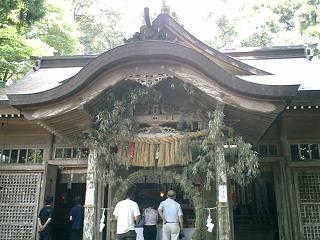 早めの昼食を取った後は神社巡りです。もちろん最初は高千穂神社!!駐車場に車を止めようと思ったら…あれっ?さっきボートでぶつかって困らせた男の子達!高校生じゃなくてもう学生?社会人?初心者マークがついているからきっと18か19歳なんでしょうね。「さっきはごめんね~」と友だちが声をかけると「いいえ~」(と言っていたかな?)という雰囲気でした。30年以上前だったらこれをきっかけに…と言うこともあったり??でもきっと「さっきは、お○さん達二人に参ったよなあ」なんて言っていたんじゃないかな。そんなことはさておき、無事高千穂神社でお参りを済ませ高千穂神社詳しくはこちらをどうぞ!!次に行ったのは、ちょっとはずれの荒立神社荒立神社最後は、神話の中でもよく知られる天照大御神(アマテラスオオミカミ)の天岩戸開き、あの天岩戸伝説を伝える天岩戸(あまのいわと)神社に行きました。天岩戸神社天岩戸神社には、天照大御神が身を隠した天岩戸(洞窟)を祭る東本宮とオオヒルメノミコトを祀る西本宮があり、主に天岩戸神社と呼ばれているのは西本宮です。天岩戸(洞窟)へは神宮司さんにお願いすれば連れて行ってもらえます。私たちは時間がなかったので、次の楽しみにとっておくことにしました。天岩戸神社からしばらく歩くと天安河原(あまのやすがわら)があります。ここは、天照大御神が岩屋の奥に隠れてしまい、世は闇に閉ざされ、困った八百万(やおよろず)の神々が今後の対策を練ったところです。残念ながら、ここも途中までは行ったんですが、結構歩かなくてはいけなかったので次のお楽しみにしました。こちらとこちらをどうぞ!紅葉の頃に行ったらさぞかしきれいでしょう!!今年の秋にまた行く予定なので、ブログにアップしたら見に来てくださいね。神社巡りをした後は、東の延岡目指して走り、途中で有料道路に入って日向に行き後はひたすら海岸沿いの道を南に向かって走ります。行きは森林浴、帰りは海の香りを!と思っていたんですが残念ながら、道路から海岸へは少し距離があり海を見ようと思ったら、少し寄り道しなくてはいけないんですよね。でも途中で割と近くに海水浴場が見えたのでちょっと休憩してパチリ!宮崎市に入ってからは、迷いながら西に向かい途中から高速に乗ってちょっぴり回り道をしてやっとわが町に帰ってきました。時刻は7時ちょっと過ぎ!!どうにか夕食の準備には間に合いました。セーフ!!こうして、往復8時間余りの日帰りミニ旅行は無事終わったのでした。今回の旅は、思いついて急に行ったために椎場村のこととか、高千穂のこととかあまり知らずに行ったんですよね。こうしてブログにまとめる段階になって椎場村の落ち武者伝説や高千穂伝説などを知って改めて、歴史を勉強してみたいなと思いました。何も知らずに見るのと、知って感慨深く見るのでは全然違いますよね。今までは、田舎道をちょこちょこ走らせるしかなかった私の軽ちゃん!!300キロ以上の道のりを…しかも半分は山道を…よくぞ走ってくれたものだと感謝感謝!普段から整備もろくにしていなかったのに、山道でエンストしなくてよかった~これに気をよくして、また思い立ったら行く九州内のミニ旅行計画を密かに立てようとしている私です。さあ!次はどこに行こうかな??あっ!もちろん家事はきちんとして行きますからね。家族に迷惑をかけないように…ホントは家族とも行きたいんだけれどみんな忙しいし…さてさて森林浴と神社巡り等々でエネルギーをためて…明日からまた山口に行ってきま~す!今度はちょっと早いお盆参りなので遊びはおあずけ!月曜の深夜には帰ってきま~す。それでは、また!!今日もご訪問ありがとうございました。