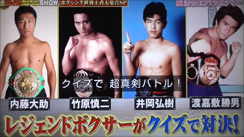現役時代は手数で勝負! バラエティ番組では口数で勝負! 面白トーク満載のクイズ番組に 大爆笑間違いなし wwwみなさん よくしゃべるしゃべる・・・MC:岡田圭右(ますだおかだ) 川野良子(フジTVアナウンサー)《出演》・内藤大助・竹原慎二・井岡弘樹・渡嘉敷勝男(2024年5月20日 BSフジ)毎週月曜日 22:00~22:55 OAクリックよろしくお願いします