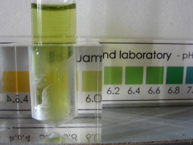 私は水槽をビー専用に3つ立ち上げているわけですが、調子のいい日の丸系選別水槽に比べ、抱卵が少ない水槽もあり、気になっていましたが、昨日重い腰を上げてとうとう、アクアマインドラボトリーさんの協力?を得て、PHとGHの調査に乗り出しました。調子のいい水槽のphは、6.2前後、ghが5と弱酸性で、硬度が高かったです。続きまして、増えていない水槽はといっても、ここ2ヶ月くらい★は出ていないので、順調には順調なのですが。左の試験管の色からして、ph5.8以下~?ghは3.5でした。(右の青いのはghの試験管です)酸性が進んだのが問題なのか、硬度が低いのが問題なのか。水をいじるのがあまり好きではないのですが、これはどうにかせねばならぬと、今日休みを活用してホームセンターへ買い物へ。帰ってきてから、調子の上がらない水槽のphをさりげにチェック!んんーーーーーっ phがあがっているで考えられることは、昨日はCo2を添加後に計ったことが唯一考えられ今日は朝一番に計ったので、恐らくその差が出たと思います。ghの差については、ソイルの投入時期が古いので、それぐらいしか思い当たる節がないんですよね。ソイルは全てアマゾニアノーマル1本でやってますし、硬度を上げるための薬剤とかは、一切入れていないので、硬度に差が出るのが不思議なくらいで。ただCo2は増えない水槽のみに入れているので、水草の種類は少々違います。基本的には、水はいじらないほうが好きです。というか、面倒なのと、コストがかかるのが一番の理由だったりして。逆に言うと、爆殖水槽には、なにも手を加えないのが一番。このまま見守ります。そんで買ってきたこれが無駄になりそうなので、ランチュウ上部フィルターに入れようかと思いますが、金魚に自信のあるかたアドバイスください。ちょっとだけ、調子の悪いビー水槽に入れてみようかな?でもアルカリに傾きすぎるのも怖いしなー。こちらは可愛い、ランチュウ水槽のphです。ちょっと不細工なショットです昨日の夜に、見るテレビもなくなり、フォミュラーニッポンを見ていました。その中でひときわ輝く車がありました。星野インパルのマシンです。昔はインパルといえば、日産だったような気がしますが、今はトヨタなんですね。なんで輝いていたかというと、「赤白」のマシンなんですよ。すぐなんで綺麗なの?と思うのと同時に、自分はビーの病気だと実感しました。それではそれを連想してしまった赤白のマシンです