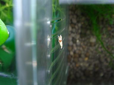 やはりモスに稚ビーは良く合いますね。重量挙げ?プラケにゴールデンを隔離していまして、上部から入り込んでしまったこの雄?ですが、いつの間にかこんなに綺麗に育っていたようで、1軍水槽では活躍してもらわないと。あっこんなところに2.・3日つっこんでしまったたらいい種がつかないことに気付き昨日、ゴールデンとともに水槽内に放しました。当たり前ですが甲殻類は脱皮をします。ゴールデンもご多分に漏れずプラケース入居時に脱皮しました。60水槽は多分300~400くらいではないかと思いますが、もっと増えたら90水槽を出すかもしれません。さてエビの繁殖にはバクテリアや水の成分、ソイル、餌、ろ過システムが非常に大切なことは言うまでもないですが、各ブリーダーの水槽にはそこの固有のバクテリアが育ちエビたちはそれ(水質)に合ったように適応していくものと思われます。(ただし、当たり前ですが繁殖できていない水槽は除くですよ)例えば私がビーを水道水ベースで上手く飼っているとして、ソコにですね湧き水で累々と飼育してきたブリーダーのエビを入れたら上手く行くかもしれませんが上手く行かないかもしれない。逆もまたしかり。(ディスカスはそうらしいです)ただし我家の水槽はほぼ同じサイクルでの水換、同じソイルを使用しているのでエビの移動は全く水合わせをしなくてもいいので楽なんです。それを実感したのがinufukuさんからきましたゴールデンさんだったのですが、inufukuさんには多分強引な水あわせに見えたかもしれませんが、同じ水系の水道水、ソイル、同じ水換サイクルなので私とほぼ同じ水質が出来ていると思われます。なのでしばらく入れていた水草専用水槽に入れていたゴールデンを1軍水槽へ移動させた時もそのまま入れましたが快調でしたね。(バクテリアには多少の差はあるかもしれませんが)と、こんな偉そうなことを書いていますが私はそんなに特別な飼育方法をしている訳ではないので実は他の岩手のブリーダーより知識は少ないかもしれません。水槽も恥ずかしながらいたってシンプルなんです。あと去年のピーシーズに載ってましたが「溶岩石」や「自然石」はエビの命に関わるとの記述もありますし、他のブロガーさんも石を入れてから水質を崩している方を多々拝見しております。あまり水槽をいじるのは良くないということでしょうね。この話題はいつもwarasyandoさんと会うと話題に上ります。あーもしかして★の原因かもねって。その他、底面Fを使わないプロ(ABWさん)の方の飼育方法も私と同じなので興味深かったですね。でももし90水槽立ち上げる時は底面を一部採用するつもりではいますけど。すみませんがたいした奥義もなかったですね。ただし私の飼育方法はここら辺では通用するかもしれませんが、これが正解ではないですし、もっといい方法があるかもしれません。そこいらへんがまたビーシュリンプの魅力なんですよね。昨日は牛刺と芋焼酎で乾杯