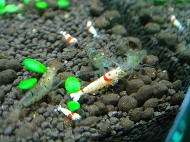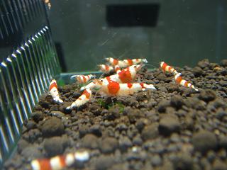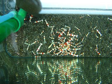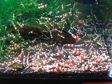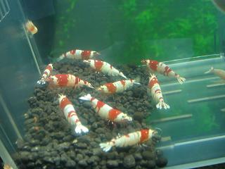 先日楽熱を立ち読みしているととんでもない記事が。「ビーシュリンプブームは終わった」と。最近はグレードに新しい変化がなく(まあ確かに)誰でも簡単にモスラが生み出せる。トドの詰り、これ以上の市場の拡大は無いだろうということみたい。なので私のようにBEEからGIへ目移りするものも仕方ないと言えば仕方ない。だって今簡単に1匹・5000円を越える値段で取引されるのは極上モスラか、華やかさには欠ける透明な光る目のGI。GIの魅力は流通量が少なくレアだということ。私はこの流れは続かないだろうと去年は読みましたがこの読みはあっさり外れました。ここまでブリーダーが増えないとは思ってもいませんでしたから。なのでinufukuさんは先見の明がありましたよね。華やかさ、グレードの将来性を考えればもちろん美ーシュリンプですよ。結局モスラ水槽からは綺麗な3バンド4バンドの紅白は出にくくなってくるのでますますこういう貫禄のある3バンドが貴重になってくると思います。今私はこの60水槽から日の丸をある程度抜く予定です。バンドモノが見直される中、そう流行は繰り返される、もっと戻って真っ赤な個体を作出したいと思っています。これが、またオクで高値なんですよね。昔は真っ赤なビー私も沢山飼っていましたが(汗60水槽にはオクのオマケの黒目のGIもいます。以外にツブラな瞳が可愛かったり全く持ってなんのオーラもないのですが、以外に目立ちます。この黒ママは4~5度目の抱卵たいしたもんです。日本人は紅白が好きなので結局はビーに戻ってくるとは思うんですけどね。取りとめのない話となってしまいましたが今日のコラムいかがでしたでしょうか。