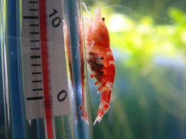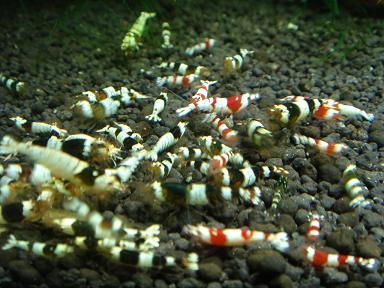 実は黒目だと思っていたハイブリッドたち(奥のヤツだよっ)夜中に懐中電灯で照らしたら目が・・・目が光るんですよ。一応写真も撮りましたが写真ではアップ厳しいです。このハイブリッドだけで繁殖をと思っていましたが頭の中ではグールグールと妄想がハエのように回ってました。そしてこのエビたちにふさわしいエビを購入してきました。1匹800円の真っ赤なママさん1匹を近所のショップで衝動買いです。多分バンドよりもこっちの方がいいのが出そうな気がします。ここのショップ、バンドビーなんていません。変わりにこんなレトロなビーがいます。こんなビーをいまだにブリードしている方のほうが逆に凄いですね。だってうちにはもうバンドしか残っていませんよ。選別でどんどん出してしまうのでこんなのは2・3年見たことないです。なんてハイブリッドエビと真っ赤なビーのF2計画は浅はかな私の計画なので頓挫すると思いますが、どうなるものか年末にご期待くださいませ。