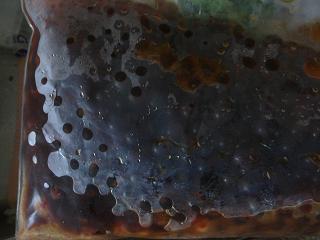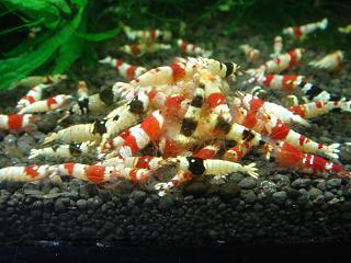 先日、いつもお世話になっているwarasyandoさんへ軽老会前にいつものスーパーへ味付けイクラを購入いきましたところなんと「生」より安く味付けイクラが売っているではあーりませんか。でもオフ会後に自分が食べてみてビツリクなんと購入したパックイクラ味がついておりませんでした。だって、パックに入って売っていたら即いいと思いますよねところがどすこい、「生」でした。よく見たらちゃんと「生」と書いてありました。でも味付けだと思い込んでいたので疑いもせず。生は食えたもんじゃありませんよ、、、すみませんでした。今後このようなことが無いよう、社員全員でイクラの選別に全力を注いでいく所存でございます。それにしても今年は不漁につきなかなかイクラの値段が下がらんまあ諦めてジップロックに入れて急遽漬け込みました。しょうゆ漬けなので色がめっちゃ悪いですが、一応食べ物です。そんな中私の発案したミシュリンプガイド。星はまで。はエビがポツポツ★になりやすい。は抱卵ママはでるが稚ビーが育たない。は抱卵、稚ビーがポチポチと育ち始めている。は抱卵・稚ビーが目立ち、子供から大人まで満遍なくいる。は言わずもがな、「爆殖」 まずは 45水槽、ママも子供も満遍なくおります。以前800円で購入した赤ママも元気でっせーっ。 同じく立ち上げた45なのに★も出ないが子供も育たない。よってこの水槽は漏れ水槽へと格下げされました。関係ないかもしれないけど底面を撤去。うーんこのゴミを掃除せずには私はいられないのでR。 この水槽も ソイル不使用なのでリセット不要、足し水のみの放置プレイです。ある意味GIほど楽なエビはいませんね。そして仮説ですが、ビー水槽でラムズが育たないのは酸性で殻が溶けるからでは?GI水槽では透き通った綺麗な殻になってますでしょ。えっでは何故ビーの殻は溶けないのかって?次男用30キューブ。底面とスポンジのみなんですけど調子はまあまあ。ビーシュリンプって訳分からんですねー。で、何故ビーの殻は溶けないのかと言うのはですね、まあ今日はこの辺にしておいてあげましょう。多分waraさんあたりがポクポクチーンッとアンサーソングを準備しているはずです。