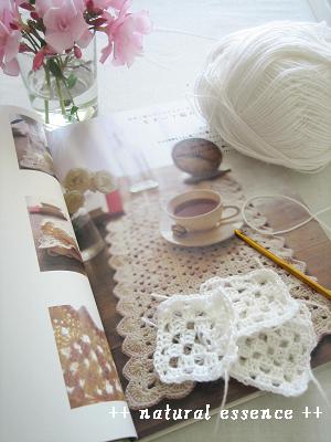 この週末は念願のピクニックでした^^と言っても・・・アパートのプールでのお食事。先日のチーズが良い具合に登場♪ワインと一緒にいただきました**一緒に頂くと、酸味の強いワインが甘くなるので不思議です。先週は、白いモヘアで小さな花を編んでいました。【from ecca* natural】これは・・・今作っているものに付ける予定デス。ほわほわで、軟らかい^^こちらも朝晩は涼しいのでモヘアを触っていても気持ちいい♪