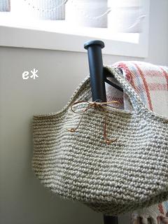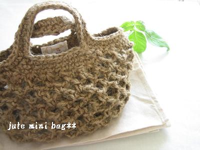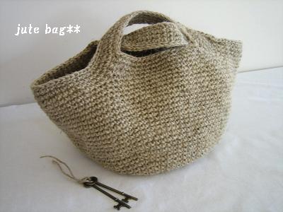 お友達との作品交換会をする事になり、作ったbag。juteで、編んでみました。中はこんな感じデス。from 【ecca* natural】日本はこれから冬なので、本当は毛糸なんかがいいのでしょうが彼女は、毛糸編みもドイリーも手芸も得意な人なので彼女のやらないjuteを使って、Originalで作ってみました。今回もまた・・・小さいんデスけど(>ДД