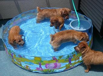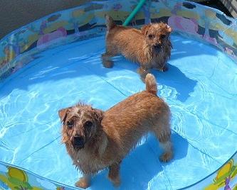 毎日プールを楽しむノーフォーク達ですがキーラとローラ、この親子が一番プールが好き。遊び方も同じ” 潜る ”です。友達みたいな仲良し親子です