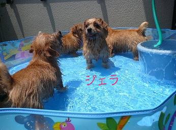 フローラちゃんとポケちゃんがお泊りしてました。ふたり揃ってニッコリ ショパン君が来てくれました水遊びは大好きだけど、ちょっと怖い。。。ちびっこ指導員がボールで誘います。ローラはお腹を出して誘います。このあと仰向けのまま沈みました(笑)それっ!楽しい♪ 楽しい♪ しっぽ振り振り。一緒に潜る~。ビショビショ・・・こんな顔になるまで遊びましたパパ、プール買ってぇ~サリー、ベリー、ローラとは仔犬の頃から仲良し。久しぶりにいっぱい遊んで楽しかったね。みんなまた来てね