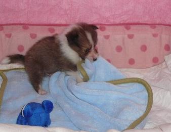 今日は朝から賑やかレオン君マフィンちゃん(パパはリオット・ママはチェスミー。タイクーンのお姉ちゃんです)コタロウ君ベリーとおもちゃで遊び・・・。隣の部屋で仕事中の私を応援してくれるちびっ子『ママ、頑張って~おとなしく遊んでるからぁ』ホント???はしゃぎすぎたコタロウ君。おばあちゃんシェルティのお昼寝の邪魔をして・・・怒られてビックリしたところ(笑)