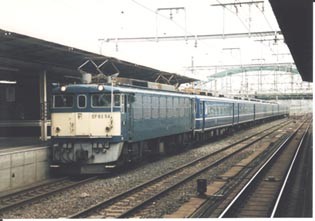 牽引している機関車は、今は無きEF62です。碓氷峠越え運用に(峠越え区間はEF63の連結が必要でしたが)特化した直流電気機関車でした。実際は客車列車・貨物列車の減少により一部が国鉄末期に下関へ配転され山陽路の貨物・荷物列車に使われたこともありましたが…