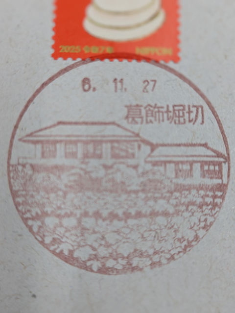 現行官製はがき使用、東京都葛飾区•葛飾堀切郵便局から風景印を消印にして投函