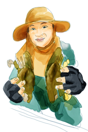 おばちゃんを描いてみました。人間を描くのは、むずかしいですね。おばちゃんの元気がなかなか表現しきれないですね。