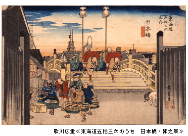 『開館記念特別展V 浮世絵入門―広重一挙公開―』を新山種美術館へ見に行ってきました。広重の浮世絵は、何点か見た事はありましたが、東海道五拾三次の実物は初めてです。展示スペースは地下にあって、平日ということもありあまり混んでいませんでした。近頃の日本美術の展覧会は、平日でも人が多くてゆっくり見る事ができませんが、ここではたっぷり堪能できました。広重の五拾三次は、風景の描写も巧みですが、人物の動きや時代の風俗がいきいきと描かれていていいですね。一つ一つの線がシャープで雨の表現や顔の表情が緻密に描かれ、奥行きもグラデーションや微妙な色の重なりで表現されているので実物を見ないとわからないことが多いです。これが何十枚もの木版と刷りの技術で、何百年も前に表現されたものだとは思えませんでした。ぜひ一度実物を見てみてください。(7月11日まで)江戸の職人のこだわりや時代の雰囲気が伝わってくると思います。チケットのインターネット割引はこちら。
