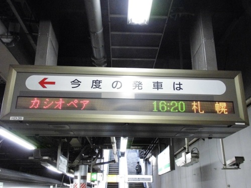 今週で定期運転終了となる寝台特急北斗星を見たくて、昨日上野駅に向かった。これまで300系新幹線をはじめ、寝台特急富士・はやぶさ、そしてあけぼののラストランを見てきた。今回はブルートレインで唯一残る北斗星のラストランを見逃すことはできない。あけぼのの時はその雄姿を一目見ようとホームは人で埋まり、まともに写真に収めることすら叶わなかった。しかし、あの雰囲気はそこにいたものでないと味わえない感動がある。だから、多くのファンがそれを脳裏に刻めるために集まる。今回はきっとあけぼの以上のファンが押し寄せることだろう。3/7(土)午前9時半に上野駅に到着。正面中央改札前のグランドコンコースから目に飛び込んできたのは北陸新幹線。(画像をクリックすると画面が拡大します。是非、拡大してお楽しみください。)北斗星が到着するまで、記念グッズを見て回った。あけぼのの時より商品数が少なく、やや寂しい感じがする。ありがとう寝台特急北斗星記念弁当も1,300円で販売されていた。駅構内のリカーショップには、ワンカップの他に1/80で製作された上野駅13番線のジオラマが目を惹いた。到着時刻が近づくと、人の数も増えてきた。おや、東京土産とあるが、ふなっしーは千葉県船橋市からもはやここまでとは・・・こんな案内も見たが、販売している商品は構内とほとんど変わりないそうだ。いよいよ定刻となり、北斗星が入ってきた。残念ながら機関車は北斗星色でなく、カシオペア色である。客車はJR北海道所属。ラストランに関するお知らせもあった。帰宅するも、北斗星色の牽く北斗星を見れなかったことに後悔が残り、明朝(本日)再挑戦を決意。3/8(日)午前9時20分に上野駅に到着。13番線の隣りの14番線にも多くの人がカメラを構えている。9時25分カシオペアが入線してきた。今日の牽引機はまたしても予想外のEF81、しかも81号機。このあと定刻より15分遅れで待ちに待った北斗星色の牽く北斗星が到着した。今日の車両もJR北海道所属。思いも叶い、回送される北斗星を見送ったあと、上野駅をあとにした。にほんブログ村