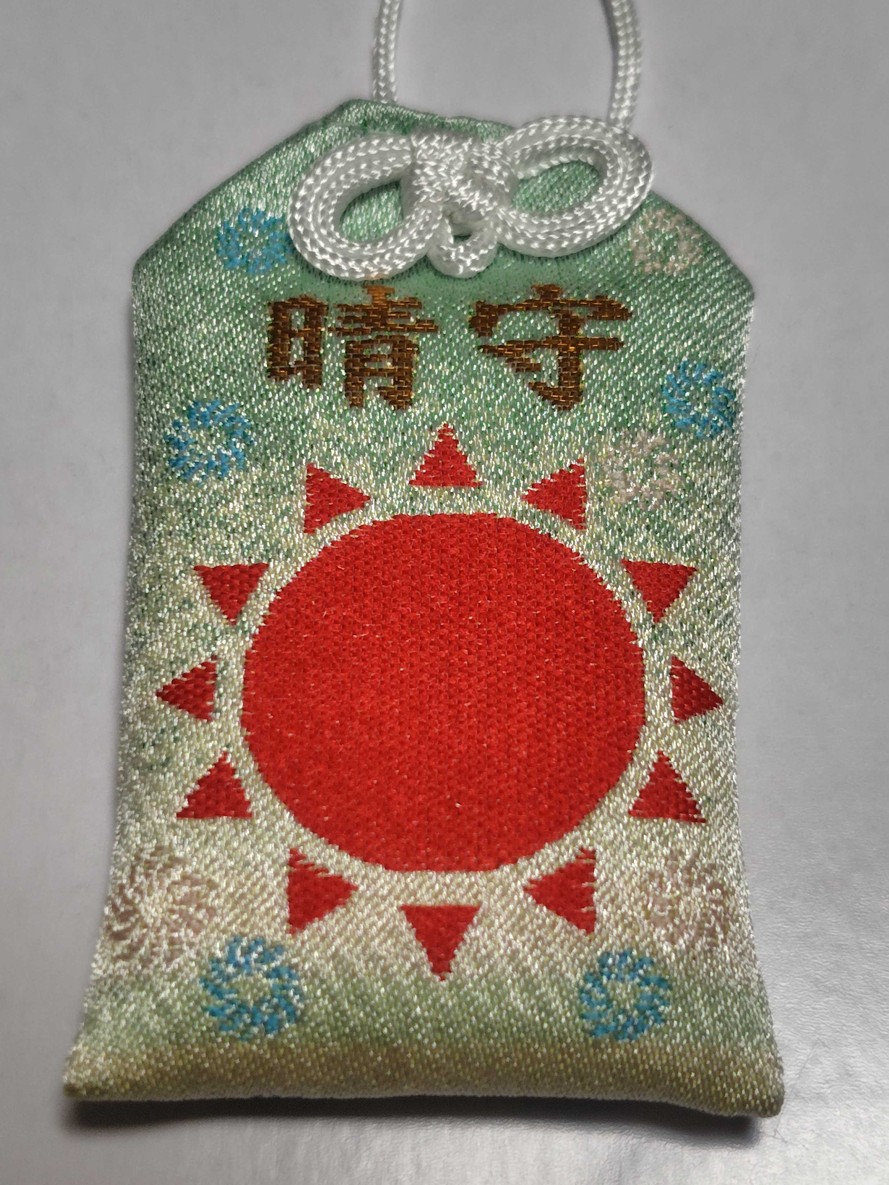 気象神社のお札とお守り(晴守り)、好天守なるものを買いました。お札は撮ってはいけない気がするので撮ってません。神棚に祀りました。そのおかげか、今週末の志摩スペイン村は、雨予報でなくなりました。普段は雨予報でなくても雨が降るのに。今度、東京に行く時に、御礼参りします。
