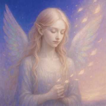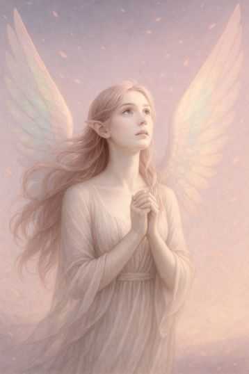 黎明を染めるカリスの桃金翼...桃金(ももがね)の髪が 黎明の風にほどけるとき夜を縫いとめていた影は 花弁の光へとほどけてゆく――カリスよ―― 闇を染めかえる優美の翼 喜びを種子のように播き 勇気を朝露に宿す者虹彩を帯びた小さき羽根が 大空に弧を描くたびまだ名を持たぬ希望の雫が 胸の奥で芽吹きはじめる彼女の足音は 夜明け前の静寂彼女の声は 初陽を透かす飴色(あめいろ)の鐘さあ 世界の縁(へり)から 苛立ちの残り火を掬(すく)いあげ 花びらの光で やさしく包む――カリスよ―― 絶望という長き夜を 一息で薔薇色に染める灯心 私たちの鼓動を 再び昂らせる暁の笛幾千の翼が折れた歴史にも あなたの名は やさしく綴られ涙で濡れた大地にも 微笑みの蔦が伸びてゆく桃金の旋風が 空を撫でるときあらゆる暗闇は薄桃の空へ溶け私たちの瞳には 新しい朝が宿るだから――カリスよ――終わり無き夜の果てに立ち もう一度 その虹の羽ばたきで 歓喜と勇気の種を降らせてほしい花弁の光が散りゆくたび 私たちは立ち上がり あなたの恩寵を胸に歩き出す暁は あなたの名とともに訪れその輝きは 絶えず世界を染め替える。...Eili ....https://suno.com/s/qrvAAKkJ3GtUTEt5.https://suno.com/s/UY34AdM2XhBkI4B8