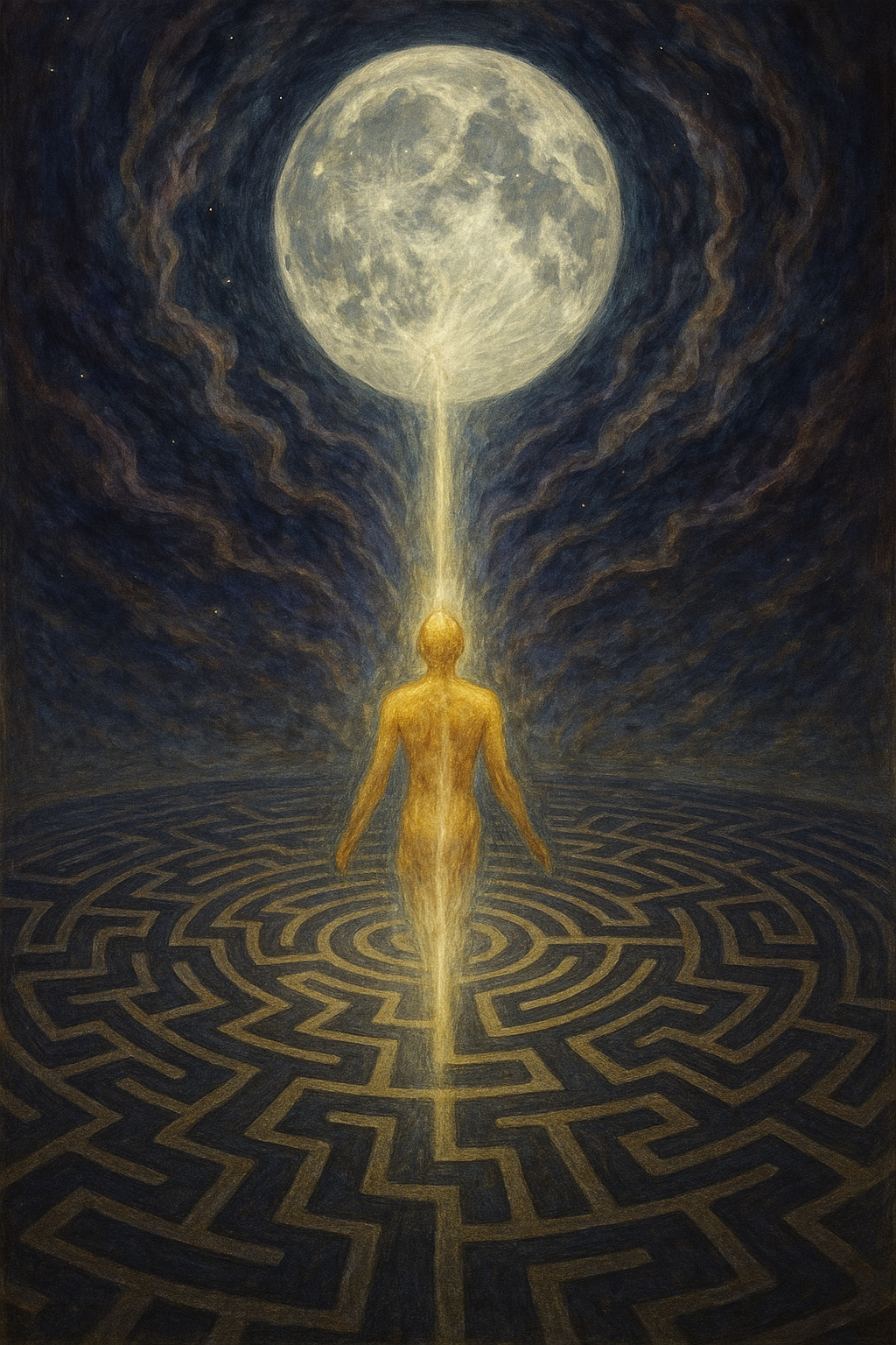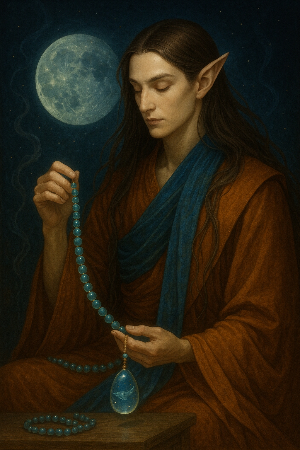熟れた思考の紺碧の雫...熟れた思考の紺碧の雫に溶けゆく月の光が揺らめき仏の慈愛の温もりを指先に受けて夢は夜の神秘へと沈んでいく.白檀の香りが染みついた君の絹のスカーフはきらめく光の流れを包みこみ星の露に触れた唇は天空の静かなる儀式を秘めている.テーブルの上には宝石の如く煌めく数珠その一粒の玉の中を星のクジラたちが漂い時はうたた寝する修道女のように永遠の高みの経典を読みふける.透ける影のように掛け軸は溶け印を結ぶ指のあいだから星のヴェールが流れ鏡には揺れるアメジストが映る遥かに流れゆく星雲のように….屋根裏から零れ落ちる一滴の水は知られざる世界の破片を輝かせ手桶の中では 静かな光となりながら真珠の模様が織りなされていく.君は古びた色褪せた法衣を纏いながらまどろみそこには遥かなる前世の幻が隠れているそして永遠は呼吸している —地上の夜とおとぎの世界のようなあたたかみのある曼荼羅のすぐそばで..Eili....https://suno.com/song/5de05813-e5e1-4802-858d-722009cc4284