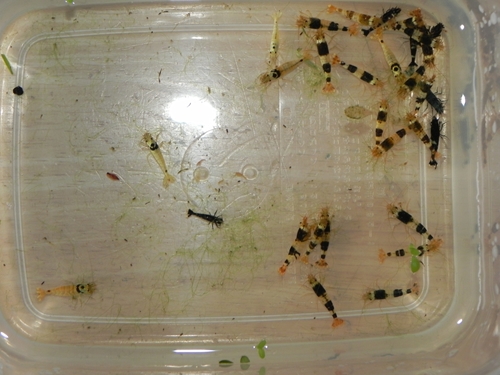 こんばんは、eitaroです。 本日は、稚エビの写真が撮れましたので載せてみます。あれあれ、赤ビーばかり見たいです。とりあえずすべての稚エビは、底引き網で回収し、45cm水槽へ移しています。 黒ビー、赤ビー。あれ! 下の方に青っぽい稚エビが写っています。もしかして、シャドー? であって欲しいものです。 そして、日曜日に立ち上げた水槽の状況報告です。立ち上げ2日目。亜硝酸濃度 やや黄色が強いので、0.2mg/L かな。 アンモニア やや緑色が出ているので、1.0mg/L。 phは、6.38です。昨日に引き続き、5L換水実行しました。 本日は、こんな感じです。eitaro にほんブログ村