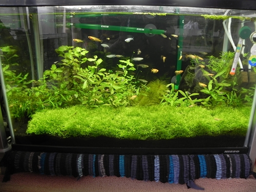 こんばんは、eitaroです。 今日は、60cm下水槽について書きたいと思います。下水槽は、先日までメダカ水槽でしたが、赤ビーが増えたため、赤ビー専用水槽としました。もともと水草をメダカと一緒にやっていたのでそのまま、赤ビーたちを入れています。リシアが爆殖していますが、CO2の添加より、LEDの高光量が効いていると思います。 発酵式ですでに弱っています。あまり出ていません。 なにより、このLEDのおかげかな???下水槽に7W×3器です。消費電力 21W。 赤ビーたちは、元気そうですが、一部しか前に出てきてくれません。後ろの茂みに隠れています。 今日は、こんな所で。eitaro。にほんブログ村