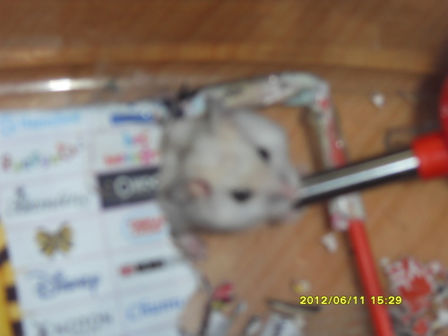 実は先月から、ハムスターを飼っています。今まで、手の掛からないペットばかりを選んできたんですが、熱帯魚も、金魚もすぐに死んでしまって、ついに、ヨナちゃんはハムスターを飼いたい~~と言い出した。以前、友達がハムスターを飼っていたので、ハムスターなら飼ってもいいかなあとは思っていた。勇気を持って買いに行くことに。あまり世話には自信が無いけど。これが、とってもかわいい~~。吠えたりしないから、静かだし。昼はほとんど寝ているので、出かけやすい。(夜行性)もらってきたときは、まだ赤ちゃんだったのに、来て2週間ですごく大きくなって、今は10センチくらいの大きさに。早い。年齢は、1ヶ月で20歳くらいなのだそうな。ペットショップで売られ始めるのが2週間後くらいなので、来て2週間で2匹で飼ってると、もう赤ちゃんができるケースがあるらしい。一回生まれると4匹くらい生まれちゃうから、すごく増えちゃうという話も。うちは、オス1匹だけいる。買ったときは、オスか、雌か、まだ分からないといわれたけど。オスのほうが、おとなしいらしい。もう一匹飼おうかなと思ったけど、ネットで、もう赤ちゃんができちゃうというのを知って、やっぱりしばらく1匹だけで飼おうと思う。
