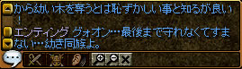 最近運動不足で仕方ありません。とりあえずストレッチをしてみました。とても柔らかいです。舞>硬いよ。身持ちの硬いElzです。こんにちわ。どなたか篭絡して下さいまし。今ならもれなくペットが付いてきてとてもお得です。昨日の続き。2ndキャラクタでサマナテイマを作ったのです。当時はサマナテイマに関する研究は全然進んでいませんでした。進んでいたのかもしれませんが差し当たり私は知りませんでした。ある情報はこんなものです。1.力の影響は無いか、あったとしても極めて少ない2.敏捷は防御力を大幅に上げる3.健康は本体のためにLv分位あれば良さげ4.運を上げた時に、ペット/召喚獣が敵を倒してもドロップ率/質が上がるかどうかは不明5.知識の影響は無いか、あったとしても極めて少ない6.自動上昇の知恵はとにかく使えない7.カリスマは肩刺青に必要、今は未実装8.ペットはエルフ戦士長がやたら硬くて強い9.タゲが取れるペットがいるらしい、戦士長は取れる10.火力は低め11.ギルド戦では本体狙われて即死なので出るな12.大器晩成気味かも今とだいぶ違いますね。良く分からないので、とりあえず鎧用に力を50、カリスマは後回しに致しました。敏捷:健康=3:1で振ってみました。どうも敏捷好きなのは癖のようです。手なずけを1だけ取って、各種召喚を12まで取りました。治療を3まで取りました。後は説得一直線です。単純ですね。ペットは古都西口の兎ハンターに致しました。遠距離攻撃なので本体への攻撃を最小限に喰い止められます。SSが残っていないのが残念です。ハンターの、『兎ハンター』君です。とても小洒落た名前ですね。しばらく付き合った後、ペットを変えることに致しました。オート地下監獄の斧槍兵が良いという話を聞きました。捕まえました。斧槍兵Exの、『斧槍兵』君です。名前を付けるのに苦心した後が見られます。今はオートの斧槍兵はコートナイトになってしまいました。説得を覚えました。周りは皆戦士長で個性が無いのですが、差し当たり捕まえられる3,4型自体があまりいません。とりあえず戦士長を捕まえます。木妖精の庭園入口はテイマの聖地です。いつ行ってもテイマがいたものです。戦士長を捕まえました。文にすれば1行ですが、捕まえるのに半日費やしました。エルフ暗殺者の『エルフ戦士長』君です。青ポーションの結晶です。ところで、飼育記録を取っていません。ペットを出したまま戦士長を捕まえるなんて狂気の沙汰です。難易度2以下の攻撃スキルしか使えません。適当にその辺を歩いているものを捕まえます。手なずけで捕まえようとしたら、2匹目は捕まえられないのでした。説得で捕まえようとすると敵のLvをかなり下げないといけません。とりあえず適当に、アリアン遺跡に行ってラットマンを捕まえてきました。レッドシーフの『ラットマン』君です。かなり弱いです。SSが残っていました。ベストショットです。