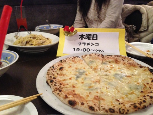 ダンススタジオの忘年会です。発表会の打ち上げ的な意味もあるんですかね。今年はパスタのお店の2階を貸切です。えるざは毎回ベリーかフラメンコか悩むのですが、今回はフラメンコのほうに席ができてました。毎回食べるものがないので、今年も出ようかどうしようか悩んだのですが、今年はちゃんと食べられるものを出してもらえました。気を使ってもらってありがとうございます!そんなわけで、きのこのパスタとかマルゲリータピザとか、えるざもガンガン食べましたよ。そしてもちろん飲み放題です。と言っても、いつも車のえるざはソフトドリンクの飲み放題です。発表会のときの映像も流していました。ゲームタイムで盛り上がったり、スタジオの忘年会では恒例のダンスタイムももちろんありましたよ。もう大騒ぎです。男性がこの騒ぎを見たら、一気に女性の怖さ?を実感できそうです。大騒ぎして大笑いしてダンス大会があって、あっという間の2時間半。ベリーの仲間たちはそのまま2次会に行ったようですが、えるざはそこで体力切れ。でもなかなか楽しいひと時でした。にほんブログ村