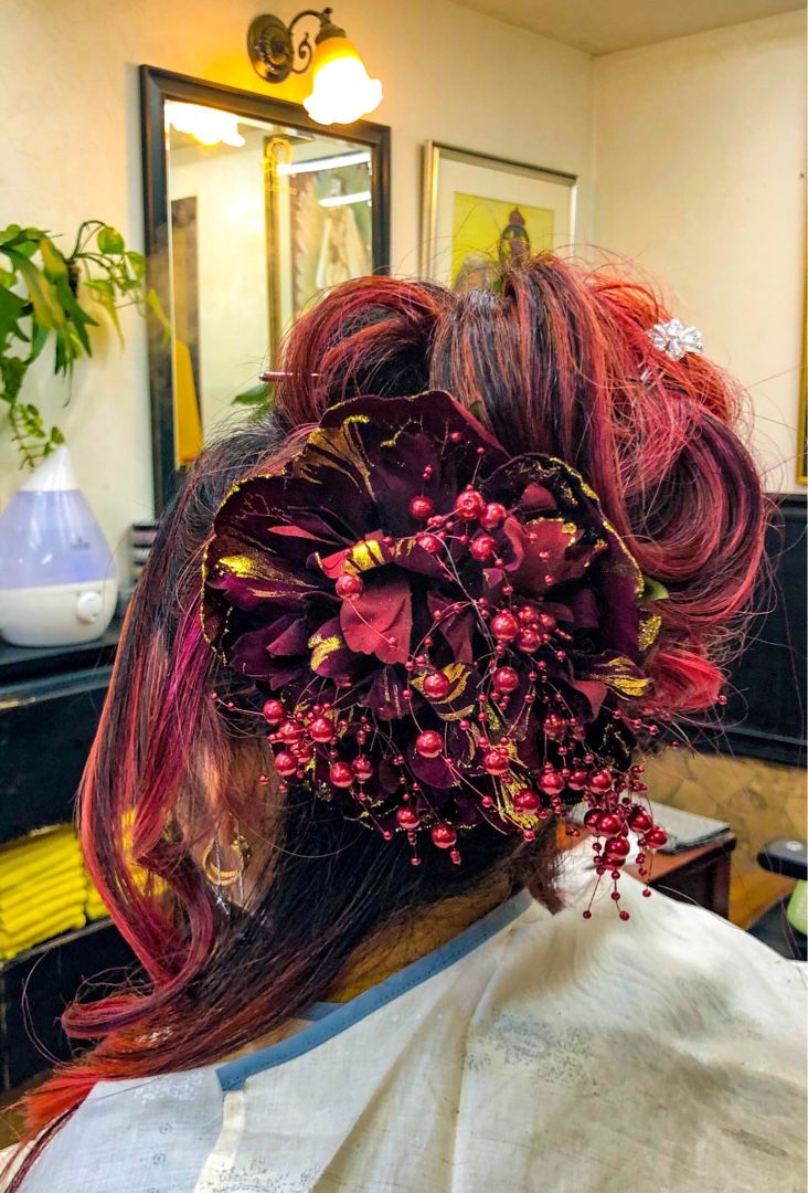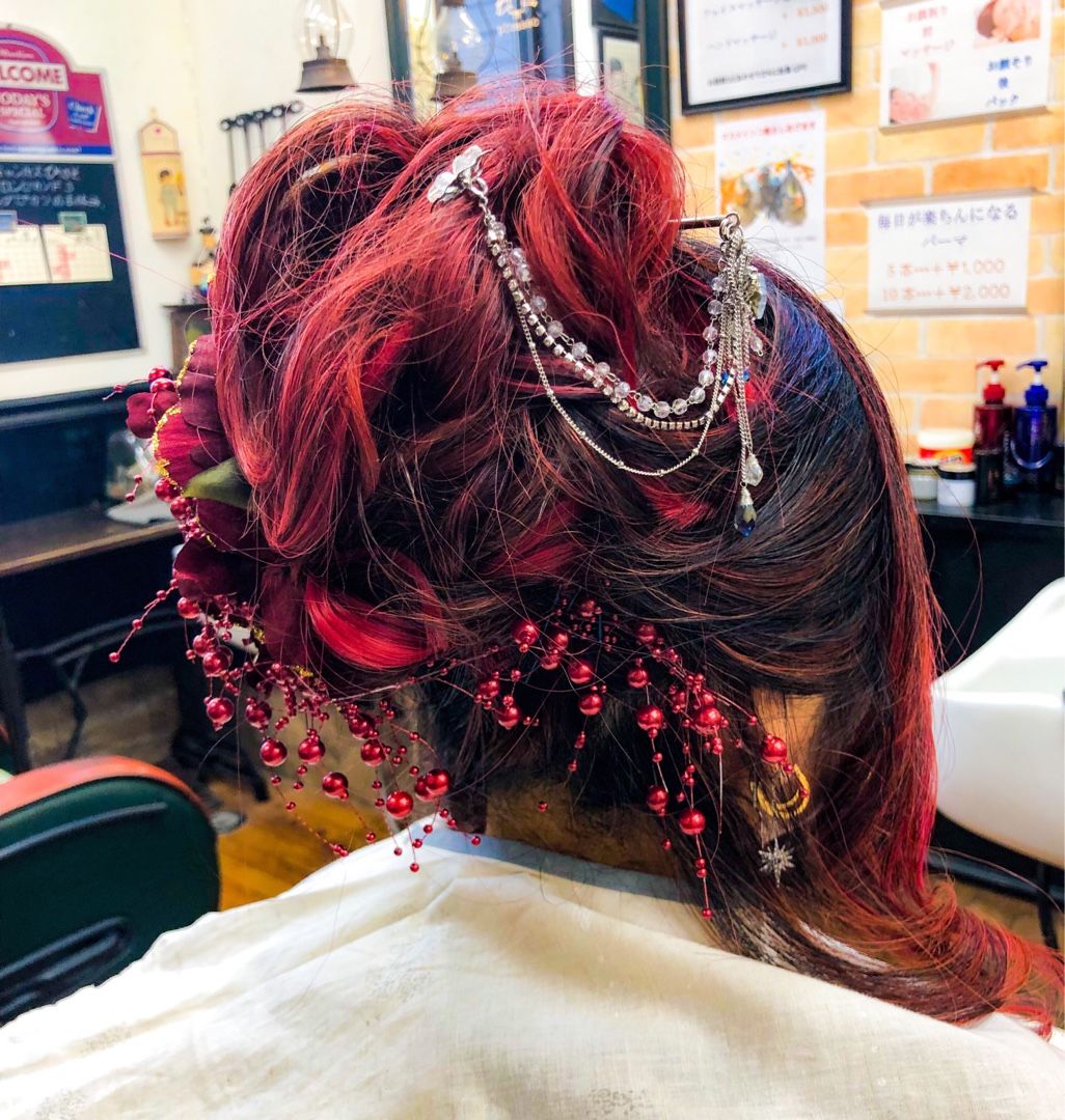 着物ドレスというものを購入したので、それに合わせて朝から髪の毛もセットしてもらいました。