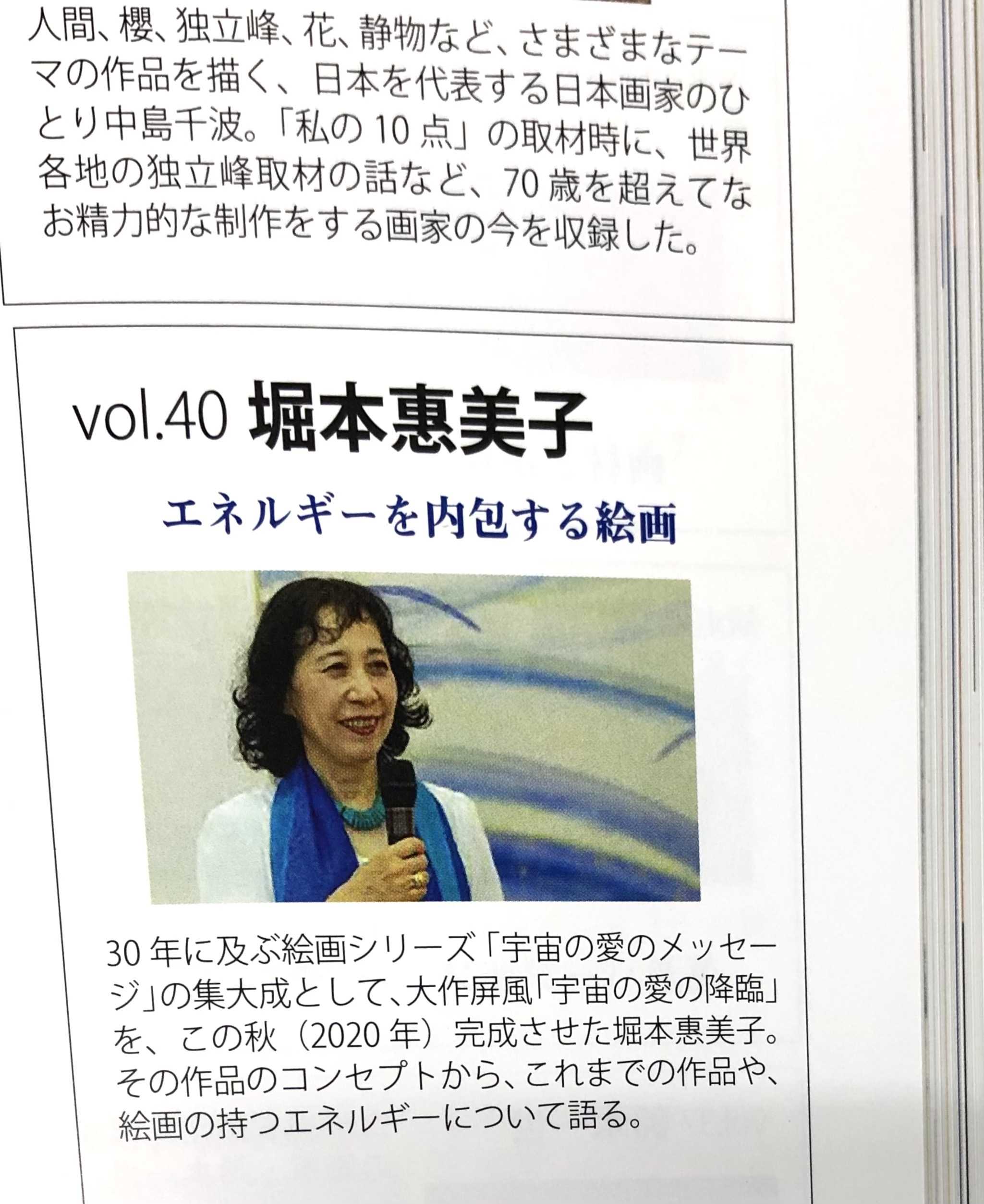 堀本惠美子作品が、『世界と日本の美術史の中、時代に挑戦した作家や作品』それぞれ約40人の中に選ばれ論評されました。(レオナルド・ダビンチ、セザンヌ、モネ、カンジンスキー、