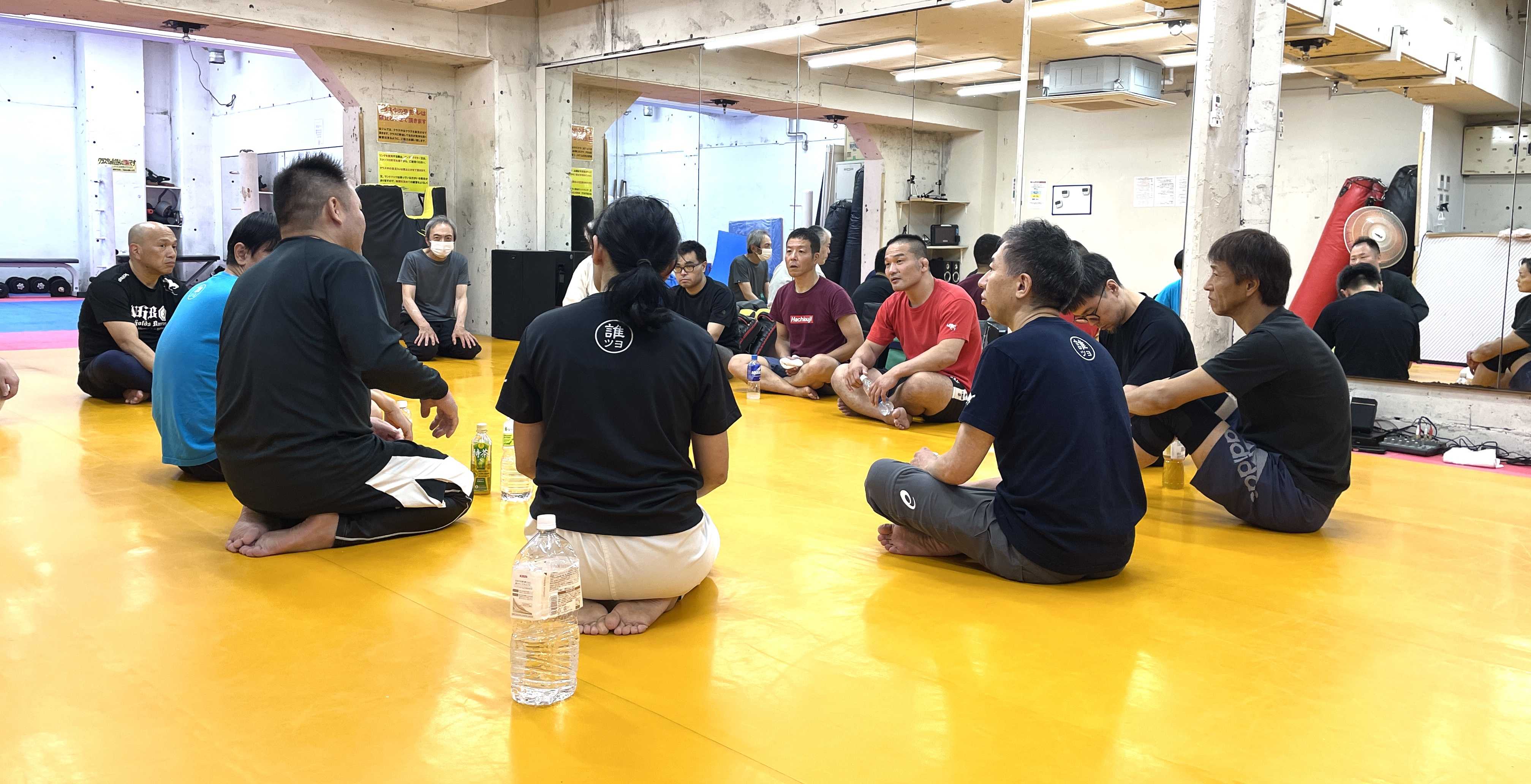 2時間の稽古の後には、輪になってその日の各自の感想や質問を述べて次へのステップとしています。