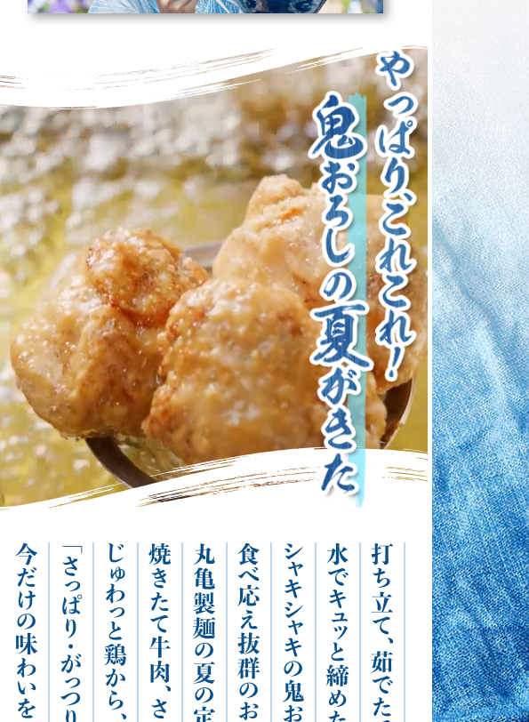 仕事の合間や終わりに感じる疲労やストレスがピークに達したときデスクワークで肩や目が疲れ、頭皮のこりも感じるような時、温かい出汁の香りとサクサクの鶏天が心身を癒してくれるイメージが浮かびます。