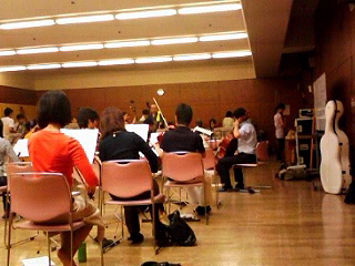 8/296:37のあさまに乗車。朝食は駅の売店で買った昆布のおにぎり、ワッフル、水500ml。大宮で湘南新宿ラインに乗り換え。例によってecuteのパン屋さんでパンを購入。新宿で中央線に乗り換えて、荻窪。暑い!クラ・Mやがわ嬢と会ったので、ご一緒しました。いつも涼しげでいいなー。まぁ、汗かかない方が良くないっていうけど、おれはやっぱりうらやましいな。前回と同じ某公共施設で9:40からFロイデの練習。まず、交響曲。こないだよりは少しいいみたい。難しくて歯が立たないってこともあるだろうけど、単純に曲をまだあまりよく聴きこんでいない人が多いような気もするな。少し間があるので、通勤時間とか利用してCDなんかをちょっと聴きこんでおいて下さい。なんだかんだ言って大事なのは音質ですよ。特に弦と木管は難しい音型多くてすっかり翻弄されちゃって、そこまでアタマ回ってないかもしれないけど、やっぱり隅々まで「美音」でていねいに歌おうとしなきゃいけない。協奏曲は、たぶん、オケのみなさんよりおれの方が曲の内容を「深刻なもの」として捉えているような気がする。元気よく、「えいやっ!」てやっつけちゃう演奏もあるけど、おれはそれは違うと思うんだ。独奏が入ってくるまでのオケの部分だけでも、おれは息苦しくなるほど切なくなる。Bartokを最後に少しやって、12:40にお終い。これは廊下の様子。例によってこどもが多い。親は大変でしょうけど、でもやっぱり、素敵な光景だ。中央線で東京駅。駅構内で昼食。沖縄料理屋に入ってみた。ソーキそばのセット(ソーキそば、じゅーしー、もずく酢など)。値段はやや高めだが、駅構内ってことを考えればこんなものか。ちょっと迷ったんだけど、やっぱりオリオンビールか泡盛を頼めばよかった。14:26の「こだま」に乗車。安い切符があるので、「こだま」にしました。別に急いでないし。とりあえず車内販売でビール。快適でした。すぐに爆睡。途中から後ろの席にきわめつけに賑やかなお子さまに座られてしまったので、そこからは読書。金本知憲「覚悟のすすめ」(角川oneテーマ21)。アニキ!凄いです。17時すぎに名古屋着。地下鉄で栄。暑い暑い。ホテルにチェックイン。早速シャワー浴びて、汗を流す。Sきちゃんと合流してゆっくり夕食。某焼き鳥屋さん。Jazzが流れて、綺麗な感じの店。これは椎茸と砂肝(だったと思う)。トマト。イタリア風だね。トマトが甘い!旨かった。ほかにも「せせり」とか「肝」とか「こころ」とか、まぁ、いろいろと食べました。ビールのあとは、泡盛。Sきちゃんを地下鉄の改札までお送りしてからホテル。この日の楽天vsロッテは5-4で勝利。苦手のロッテに連勝。良い。良い。