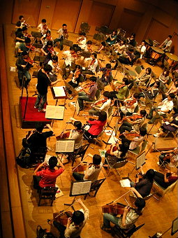 9/13緊張でものすごく早い目覚め。もう一度眠ろうと試みるが、失敗。まぁ、仕方がないです。いつものこと。「がっちりマンデー」は、明治製菓。おもしろい。朝食はコーヒー、水、某店で買ったミニクロワッサンとカップのポタージュスープ。同居人はカップのミネストローネ。徒歩でゆっくり某ホールへ。10時頃だったかな、楽屋入り。ついにEネルジコの本番当日。午前中はSibeliusとアンコール。最初、例によって客席に降りて聴いてみる。1楽章で心配な中間部の細かい音型が、やっぱりなぁ。ここがこーゆー感じだとすると、当然、3楽章も心配だ。お客さんが入ればかなりマシにはなるだろうが、それでも繰り返し執念深く徹底する。こーゆーところはかなりサディスティックに引き締めておいて、やっと客席では普通に聴こえるので、絶対にこのくらいやっておかなきゃいけない。あとは、美しい音色、美しいサウンドの徹底。ホールの響きを利用して、空間を無理なく鳴らせるように、大事な場面を何度も繰り返し練習。金管については、唇の問題あるのでもちろん放置。12時30分頃まで。昼休憩は1時間。昼食はコンビニのパスタとちゃんぽんを同居人と分け合って喰う。午後はぷろ子から。バランスは客席に行かなくても大丈夫だとは思ったが、念のため冒頭部分をKじま先輩に聴いてもらう。Sきちゃんはかなり緊張していて明らかに様子が変だが、エンジンはかかってきてる様子。いい感じだ。最後に、Beethoven。それにしてもバンダがバンダらしい位置で吹くと、やっぱり良い。実にかっこいいです。こればっかりはCDではわからない、実演の醍醐味。下で吹いてるらっぱAきちゃんが、実にうれしそうに何度もバンダを見上げるのが、かわいい。とにかくヒートアップしやすい音楽なので、爆走してしまいそうなのが心配。特に、ラストが心配なので、気をつける。このホールでそれをしてしまうと、たぶん細かい音型が団子状になって潰れてしまって、何が何だかわからなくなってしまうだろう。1stの例の箇所は何とかなりそう。ホール効果にも助けられてだいぶ楽になったと思う。15:30頃まで。楽屋で休憩し、着替え。異常に緊張して、待つのがつらかった。Sきちゃんママに頂いたレッドブルなど飲んで気合いを入れ、17時、ついに本番。たくさんのご来場ありがとうございました!最初のBeethoven、テンポも走ることなく落ち着いていて、細かい音型もよく聴こえていたんじゃないかな。序奏部分のFg.、Cl.のソロからしてすごく雰囲気出てたし、Ob嬢もしばらくブランクあったとは思えないくらい歌えてた。笛もあきらめずにここまで良くがんばったね!弦も細かいところまで、よく整えられていたと思うし、1stの例の箇所も冷静にうまく切り抜けられた。ホルンもYーたを中心にかっこよく決まってたよ。太い音で歌えていて、とても良かった。難しい作品だけど、ここまでまとまったら大したものです。でも、やっぱりバンダがかっこいいね。とても立派でしたよ。Bravo!続いてぷろ子。Sきちゃん、かなり緊張していたようだが、かなり早い段階で立ち直った。すごくいいソロだったと思います。オケもいい感じだったと思う。らっぱやクラのソロもシブくて良かったけど、やはりいちばん目立ったのは何といってもKじま先輩の非常に気合いの入ったGlocken。ラストのGlockenは、ちょっと鬼気迫るものがありましたね(笑)。でも、おれはこの曲の最後はこうでなければいけないと思ってるので、大満足です。Bravoでした。この曲はチューバやC-Fg.をはじめ、Vc.&Cb.という低音楽器群がとても大事なんですが、とても良かった。ぷろ子をこよなく愛する男=同郷げんちゃんがトップに座ってたのが、良く作用したのかもしれない。いや、マジで。テイストがわかってる奴がひとりでも居ると、やっぱり違うんだよ。休憩後、Sibelius。良かったんじゃないですかね。弦の細かい動きも良く決まってたし、あまり荒れずにいい音で無理なく歌えてる場面も多かった。すごく透明で綺麗でうっとりするような瞬間が、何度もありましたよ。細かい音型では、1楽章の中間部のVaの細かい音型がFg.との絡みもあってたぶん一番難しいんだけど、すごくクリアに聴こえてたし、破綻なくうまく乗り切ったと思う。3楽章の弦は特訓の甲斐あって、クリアでとても良かった。懸案事項だったチェロも、本番はよかったですね。かなりサディスティックにしごき倒したので大変だったと思うけど、よくがんばりました。Sんのすけもぎっくり腰にめげず、いいソロだったよ。木管は、Oしまくんを中心によくやってくれたと思います。それぞれ、みんないいプレイでした。Fg.の2楽章冒頭なんか、何だかすげ-良かったし、3楽章の「おーぼえ菌」の場面も実に魅力的だった。太鼓は、昨年よりもずっと引き出しが増えた感じがするな。いろいろ考えて叩いてるのがよくわかるよ。この曲のホルンは個人的にはとても大事なパートだと思ってましたが、いかちゃんを