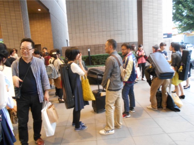 2015/10/11午前ふつうに起床。ホテルの朝食。バイキング。中国の人たくさん居た。みんな楽しそうで良し。準備して徒歩でゆっくり会場へ。会場に近いホテルでよかった。9時30分頃会場入り。energicoの本番当日10時前からリハーサル。ちゃい子から。ゲネプロは基本的に座ってやらせてもらった。おれの足は長持ちしない。仕方ないです。昨日買った東郷町のTシャツを早速着用。けっこう着心地いい。Scriabin。バランスは心配してなかった。問題なし。足、心配だが、これだけは立って練習した。座ると鍵盤が見えなくなっちゃうから。あきちゃん先生、まったく心配なし。協奏曲降り番のU爺のご意見も参考にさせて頂きました。休憩がてらあきちゃん先生のアンコール(Scriabin Op2-1)もみんなでゆっくり聴かせてもらった。ステキだ。で、まてき。きれいに鳴ってきてる。みんなで我慢した甲斐があったね。本番楽しみ 13時30分開演でちょっと早めなので、急いで昼食。楽屋でコンビニのたらこスパゲティ。こーゆーときは炭水化物必須。「午後」に続く。