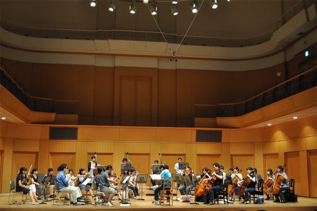 2016/8/14よく寝た。身体の痛みなし。疲労もそれほどでもない。これはおれとしては極めて優秀だと言える。ただし、喉の痛みはアリ。昨日あんな感じじゃ仕方ない。声嗄れがそれほどでもないのはラッキー。家内とおにぎり半分こして朝食。9時会場入り。ホテル近くてよかった。うん!これは壮観だ。それにしても今回のゾリは練習開始がほぼ必ず「めたもる」だったのはきつかった。朝、みんなと明るくさわやかに挨拶してさあやりましょう!と言ってめたもる始めるのはマジきつかった。10分後くらいにはおれもオケもどん底でダークなムードになってしまう。脳を節約して序奏と協奏曲にとっておこうと思っても無理(^◇^;)全然ダメ。さすがにこの日は本番直前のリハーサルなので、おれはかなり節約しました。オケはリハから実にいい鳴り。tuttiの部分にちょっと時間かける。ものすごく手が入った楽譜なのだが、本番直前になっても構わず容赦なくアップデートする。ホールで鳴らしてみるとtuttiの部分が思ったよりうまく機能してることが確認できた。うれしかった。安心した。「ゾリの良さ」が無理なく発揮されてる。おじーいつもありがとう!「本」手に入れて読むよ!「めたもる」は低弦中心の音楽。ものすごく大事です。通常の弦合奏やオケの感覚とは遠くかけ離れている。特に2,3,4celloが飛び抜けて大事だったりする。1celloはだいたいviolin&viola寄りで、5celloはベース寄りのことが多い。2,3,4celloの3人がcello的。そしていつも非常に大事な役割を負わされている。変容を進める核になって、劇性を高めるために奮闘することが要求される。2,3,4celloを担当した3人娘は本当によく弾いてくれた。それはもう、彼女たちの真摯な姿を見るだけでちょっと泣けてくるほどのものすごいがんばりでした。おれは今回ほとんどサディスティックにcelloを煽った。それを常に真正面から受け止めざるえなかったのが3人娘だった。大変だったと思う。(おっさん2人はcelloの席に座っているものの、出張状態の時が多い)violaは臨機応変に低弦寄りになったりviolin寄りになったり難しいパート。でも、とても重要だ。ベース、練習からいつもいい音してたなあ。最後の葬送のテーマやラストの音の鳴らし方はいつもホントに良かった。