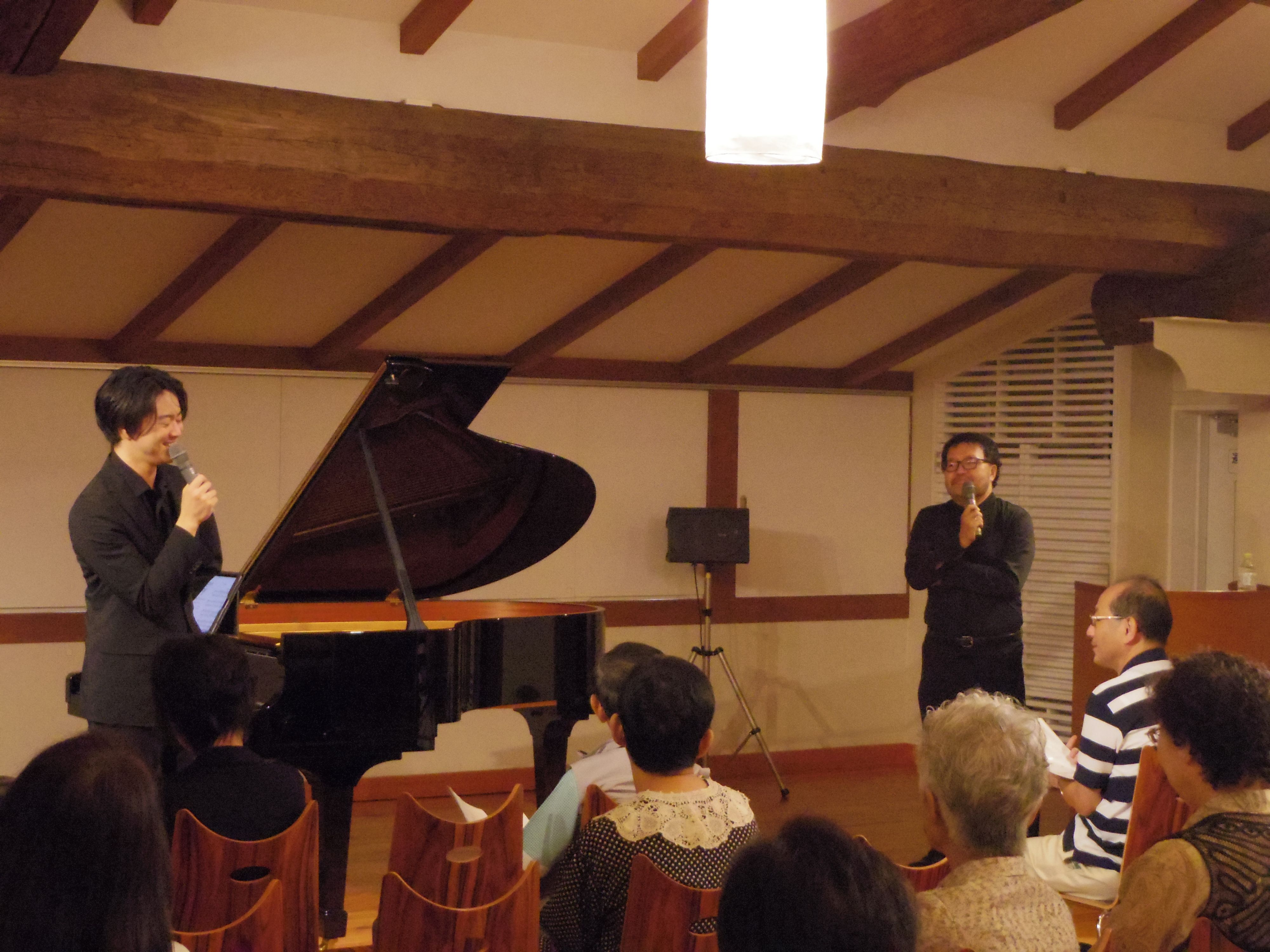 2018/09/01小雨。涼しい。湿度高め。スクリャービンピアノソナタチクルスvol.5ご来場いただいたみなさまありがとうございましたピアニストは松橋朋潤くん。この日のプログラムはソナタ第5番 Op.53ソナタ第8番 Op.66 前奏曲Op2-2ソナタ 第9番 「黒ミサ」 Op.68このチクルスはアンコールで全員に必ずスクリャービンの練習曲Op2-1を弾いてもらってます。松橋くんはそれにプラスしてもう一曲ガーシュインの"The Man I Love"これは黒ミサのあまりにも歪なソナタ形式について話してるところかな。松橋くんはおれの話を注意深く聞いててくれて、的確におれのレクチャーのアシストをしてくれる。感謝。松橋くんの補足で、よりわかりやすくなった。素晴らしい演奏だった。8番のソナタは弾くのも、曲の理解も難しい曲で大変だったとのこと。そんなことは微塵も感じさせないとても美しい演奏。後半の黒ミサは照明をいつもよりぐっと暗くして演奏。いい感じでした。次回は最終回。いよいよおしまいだなー。ビアノは久保田千裕くん。11/24 14時竹風堂大門ホール12の練習曲Op8よりソナタ10番Op70詩曲「焔に向かって」Op.72Op8から何弾くのかまだ知らないけれど、Op8で有名なのはこれですよね。まあ、お楽しみ。みなさまぜひお出かけください。夜、駅前で打ち上げ。